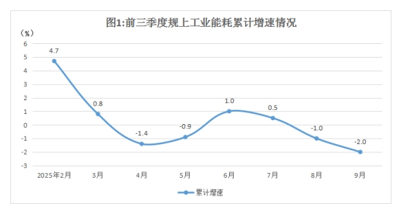 前三季度,全市规上工业综合能耗1136.2万吨标准煤(等价值,下同),同比下降2.0%,增速较一季度和上半年分别回落2.8和3.0个百分点,总体呈下行态势。(见图1)