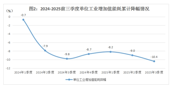 前三季度,全市规上工业节能降耗成效显著,单位工业增加值能耗同比下降10.4%,降幅较一季度和上半年分别扩大2.2和1.4个百分点。(见图2)